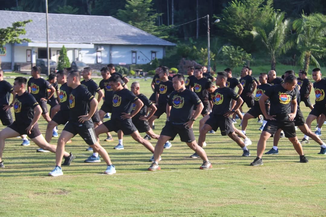 Komandan Brigif 4 Mar/BS Pimpin Olahraga Bersama Prajurit Brigif...