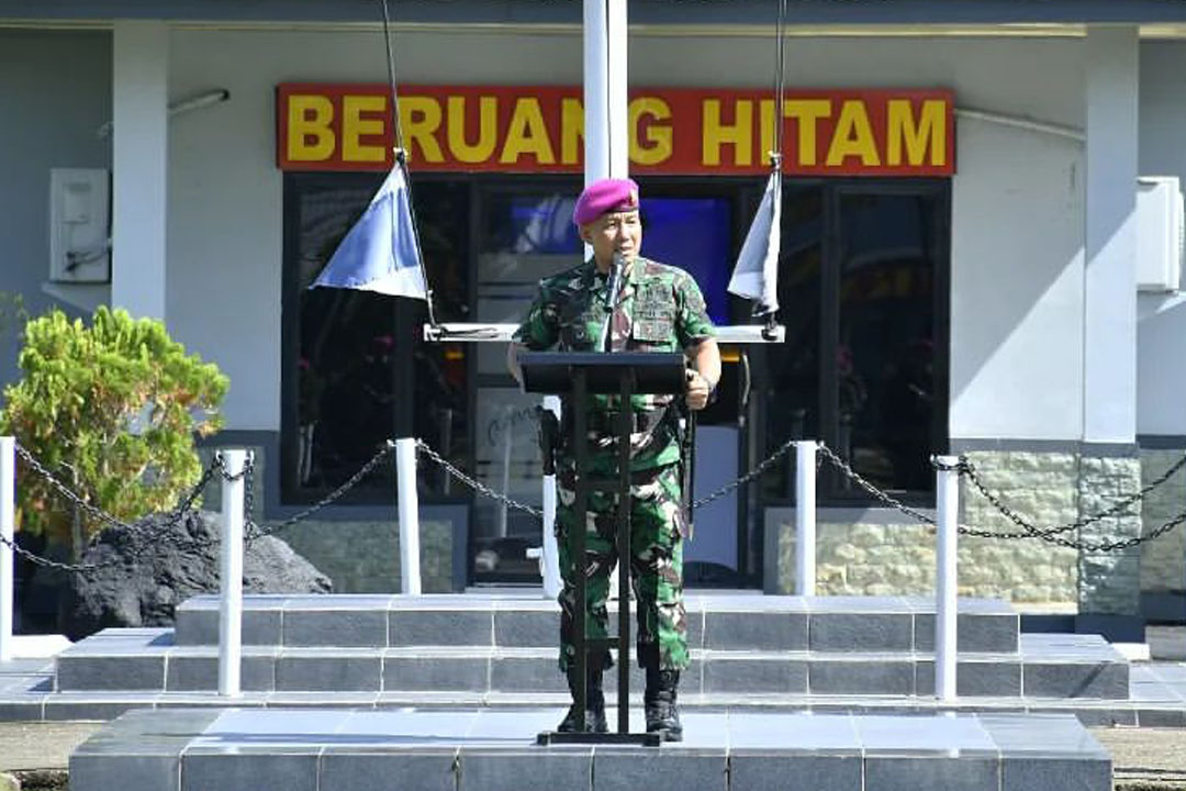TNI AL, Dispen Kormar, Brigif 4 Mar/BS (Pangkalan Berandan). Prajurit Batalyon Infanteri 8 Marinir laksanakan Upcara peringatan Hari lahir Pancasila bertempat di Lapangan Apel Yonif 8 Marinir, Kec. Sei Lepan, Kab. Langkat, Sumatera Utara. Sabtu (01/06/2024).