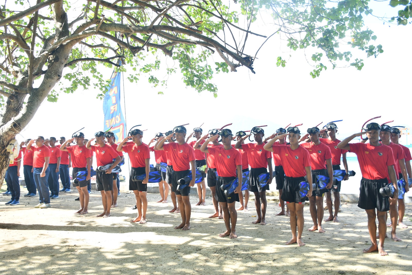 TNI AL, Korps Marinir, Brigif 4 Mar/BS (Pesawaran) Dalam rangka memperingati Hari Ulang Tahun ke-80 Korps Marinir, Panglima Korps Marinir (Pangkormar) Letnan jendral TNI (Mar) Dr. Endi Supardi, SE, MM, M.Tr.Opsla., CHRMP., CRMP., dilayani Inspektur Korps Marinir (IR Kormar) Brigjen TNI (Mar) Ahmad Fajar, SM didampingi Asisten Perencanaan dan Anggaran (Asrena) Brigjen TNI (Mar) Umar Farouq, SAP, CHRMP., M.Tr.Opsla., M.Han., Danbrigif 4 Mar/BS Kolonel Marinir Supriadi Tarigan, SIP, MM secara resmi membuka start lomba Marines Aquathlon 2025 yang digelar di Pantai Cakra, Jl. Way Ratai, kec. Teluk Pandan, Pesawaran, Lampung, Sabtu (29/11/2025).