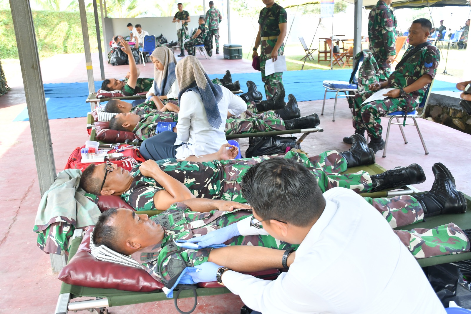 Setelah pelaksanaan apel pagi, terlebih dahulu prajurit melakukan pemanasan untuk mencegah terjadinya resiko cedera dalam berolahraga. Seluruh prajurit kemudian melaksanakan lari pagi dengan rute luar kesatrian kurang lebih 3200 Meter yang dilaksanakan dengan gembira dan penuh semangat.